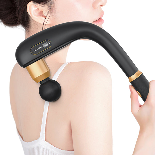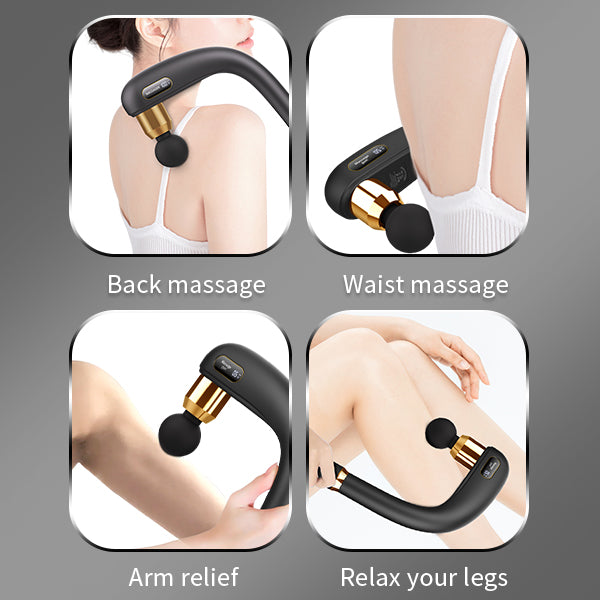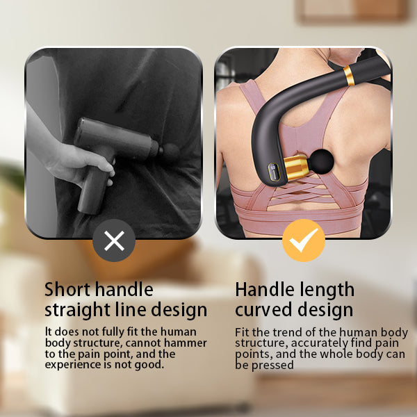 - Mango de extensión y diseño ergonómico: nuestra pistola de masaje cuenta con un mango alargado de fácil agarre con una curva ergonómica de 120° que te permite alcanzar y masajear profundamente sin esfuerzo áreas de difícil acceso como los hombros, el cuello, la parte inferior de la espalda, la espalda y los pies, lo que te ayuda a aliviar rápidamente el dolor después del entrenamiento y relajarte eficazmente.